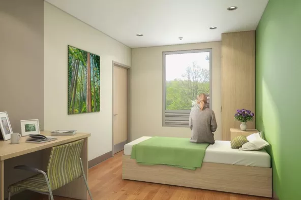 “Providing clients with their own space is a big part of fostering dignity, respect and autonomy,” said Pelletier. “For a client, having their own private space helps them to feel safe and comfortable. Many of our clients have lived in shared accommodation prior to coming here and may not feel safe in shared spaces. With individual rooms, they can make the space their own, and they have somewhere calming to return to after treatment or programming. Clients also don’t have to share washroom or shower facilities, and this brings a sense of privacy and respect.”